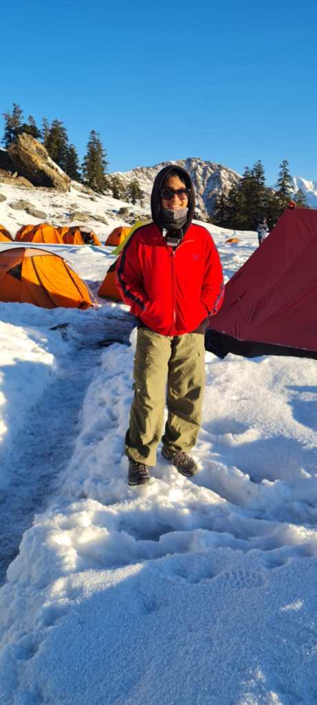 Well, like any other game, we have our second level. The next day, we trekked up to Tali Top. That’s not our final destination, but for the sole reason of acclimatization, we did this before our final stop. We trekked slowly and steadily up to the top, learning all the things we had to keep in mind before our final destination. After this peak, we headed back to Gulling camp. I was, unfortunately, not able to make it all the way, but I was able to spend some time relaxing in the snow. The trek leaders made great snowmen.